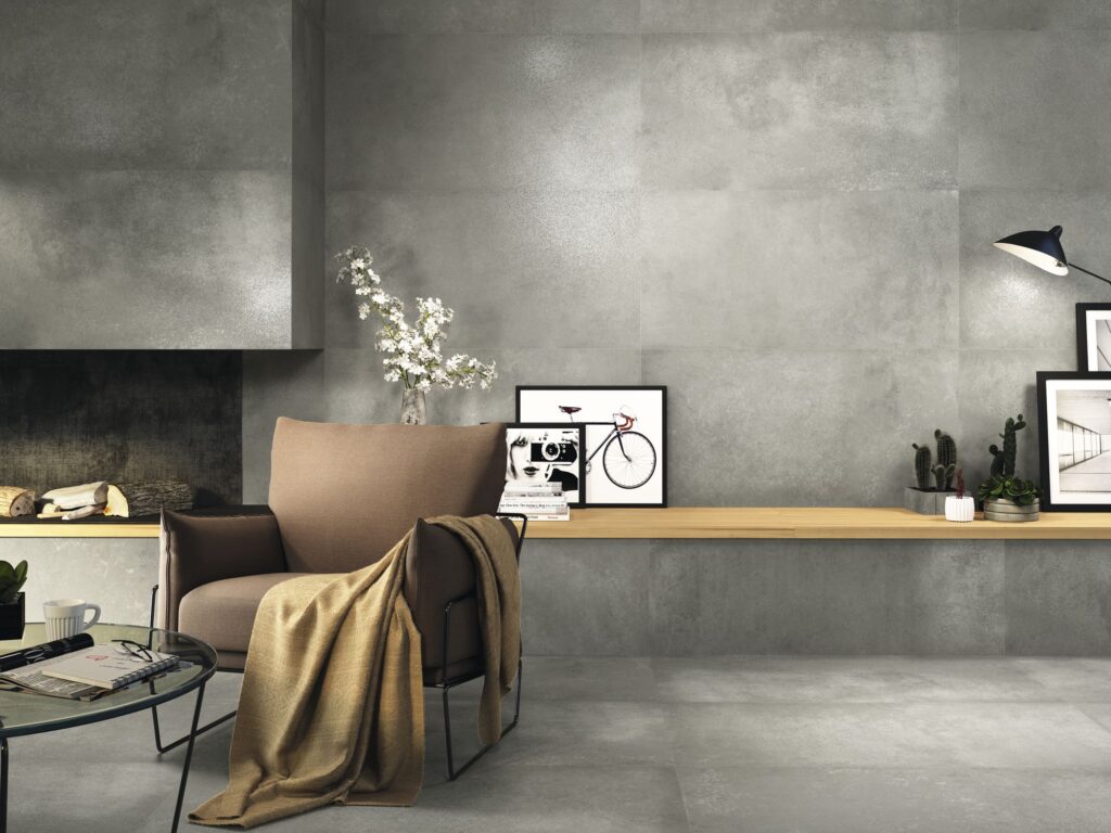 Prachtige onderhoudsvriendelijke keramische Beton-Look tegel , geschikt voor alle ruimten binnen in uw woning , zowel vloer als wand .