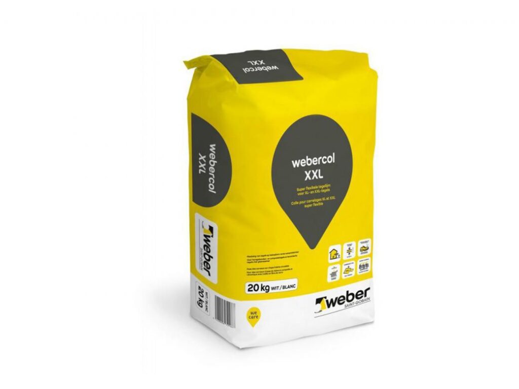 Lijm te gebruiken bij tegels in verband bv keramisch parket of klein romeins verband of groot romeins verband op vloerverwarming te plaatsen. Ook te gebruiken bij tegels >100 x 100
